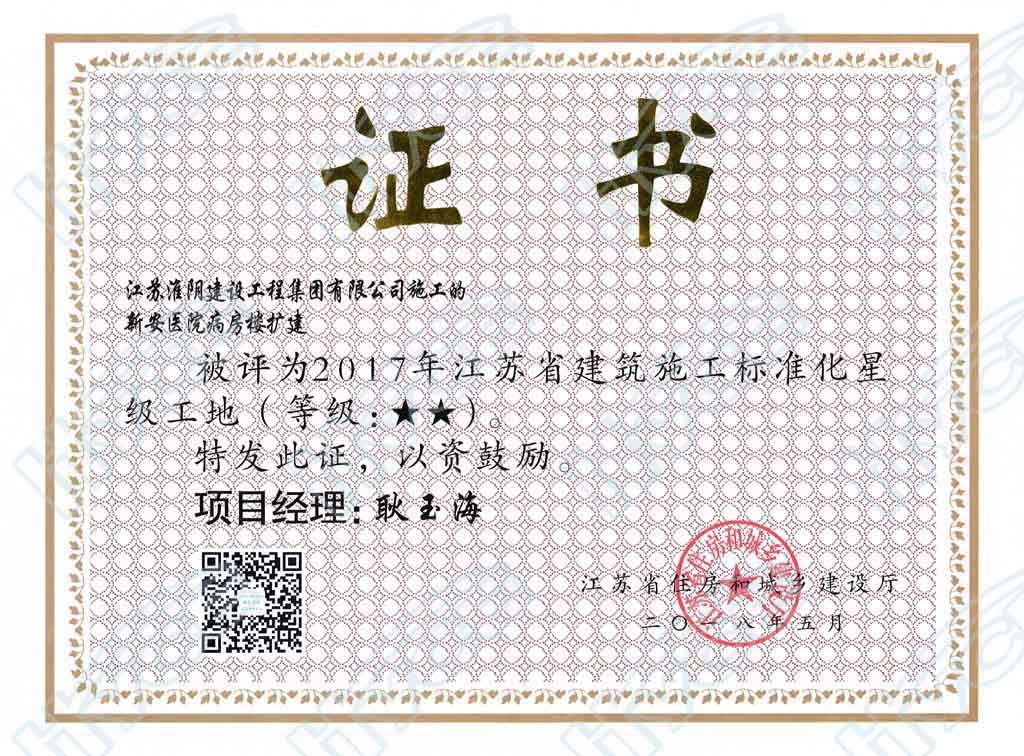 2017年江苏省建筑工程施工标准化星级工地(等级★★★)