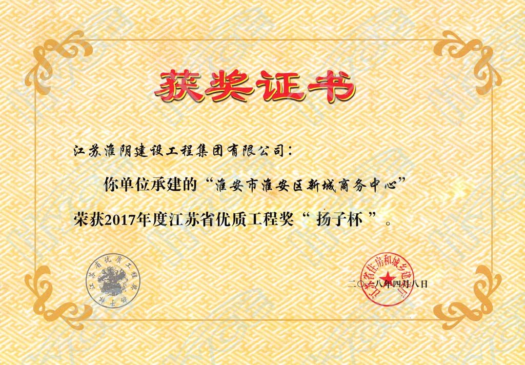 2017年度江苏省优质工程奖“扬子杯”-淮安市淮安区新城商