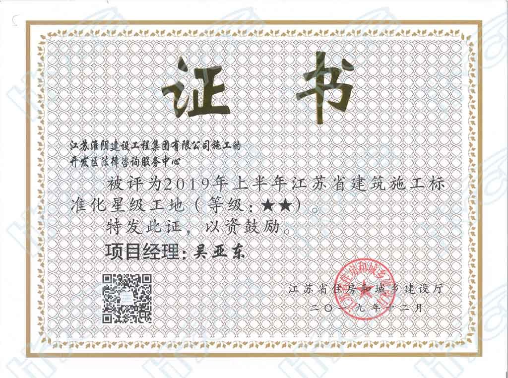 2019年度江苏省建筑施工标准化★★星级工地-开发区法律咨