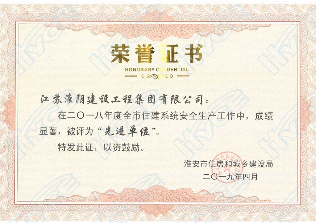 2018年度淮安市住建系统安全生产先进单位