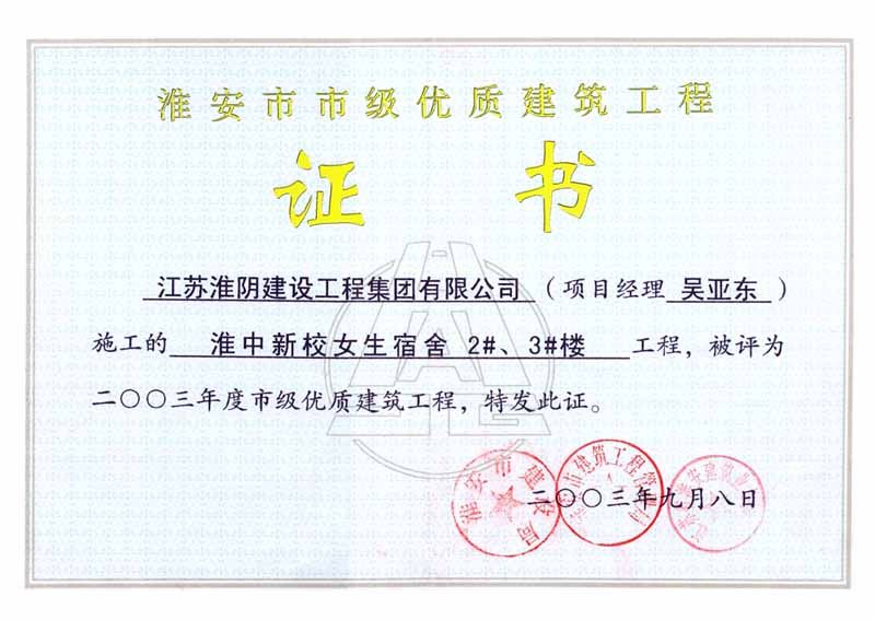 2003年市级优质工程淮中新校女生宿舍2#3#楼(吴亚东)