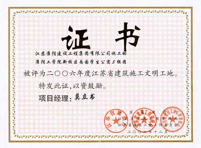 2006年省级建筑施工淮阴工学院新校区南园学生公寓5组团-莫立书