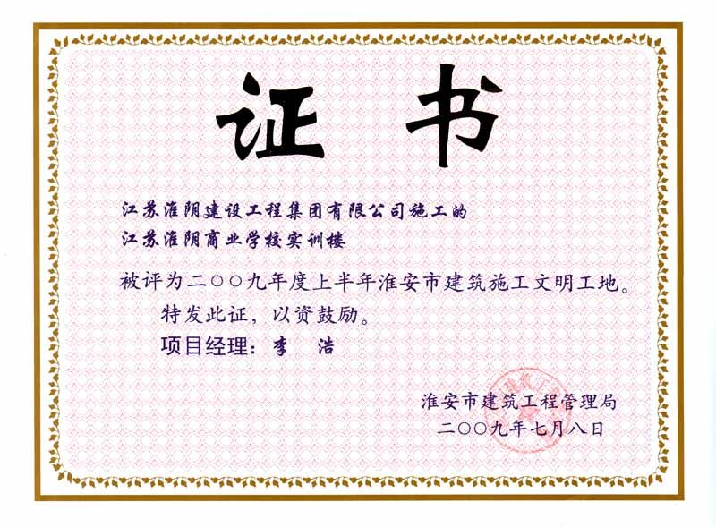2009年市文明工地江苏淮阴商业学校实训楼-李浩
