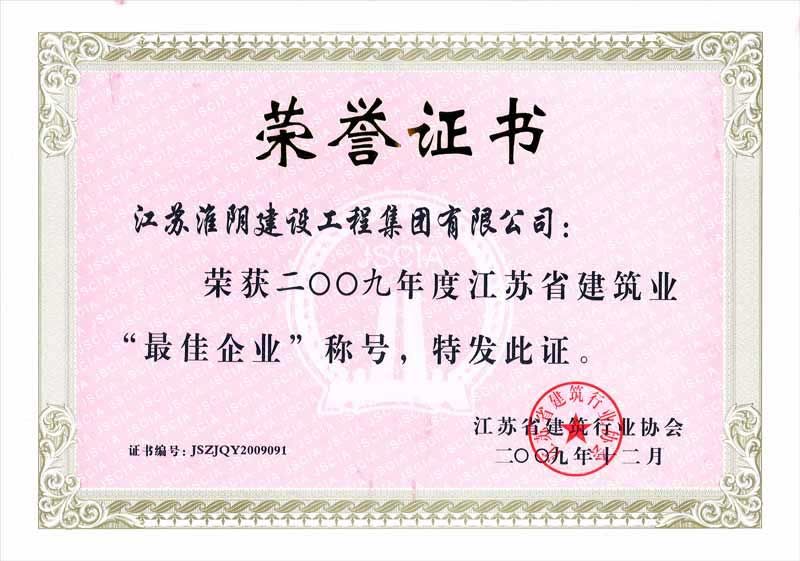 2009年江苏省建筑业“最佳企业”