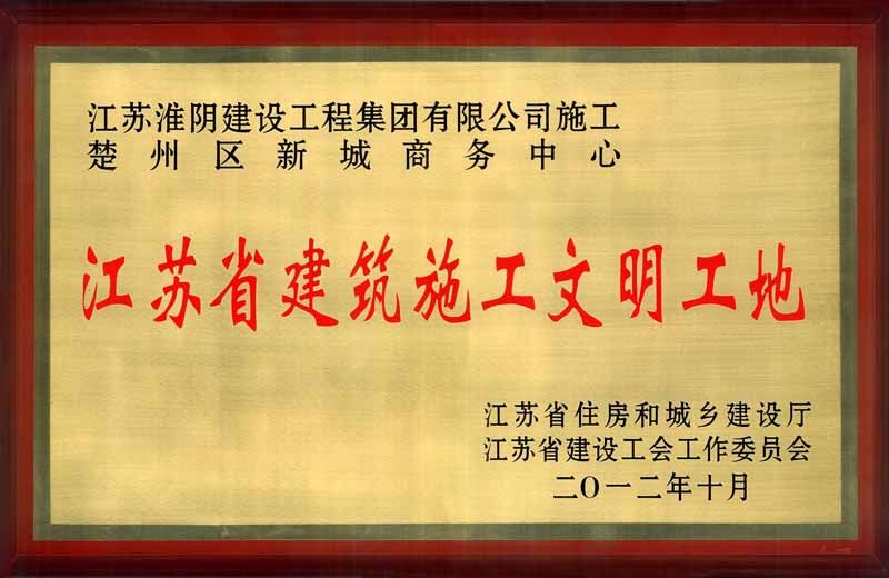 2012年省文明工地楚州区新城商务中心奖牌