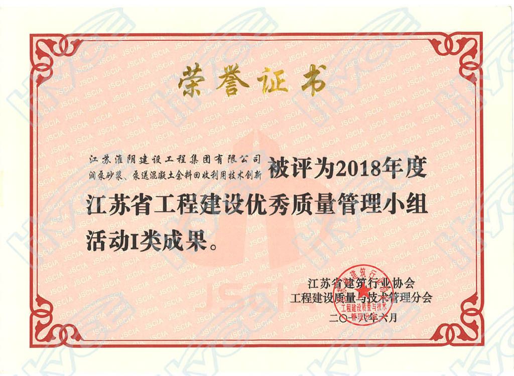 江苏省工程建设优秀质量管理小组活动I类成果