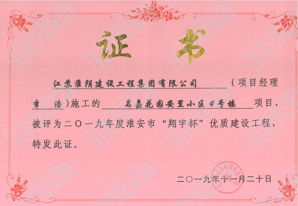 淮安市“翔宇杯”优质建设工程-名嘉花园安置小区4号楼