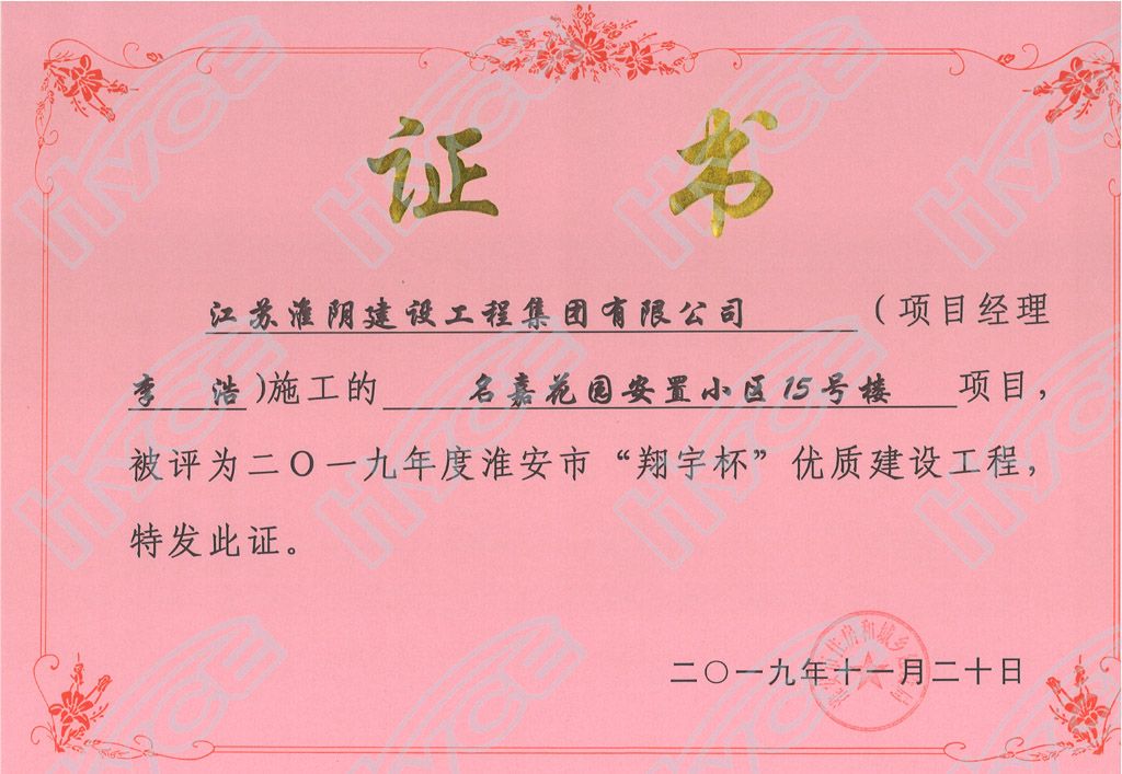 淮安市“翔宇杯”优质建设工程-名嘉花园安置小区15号楼