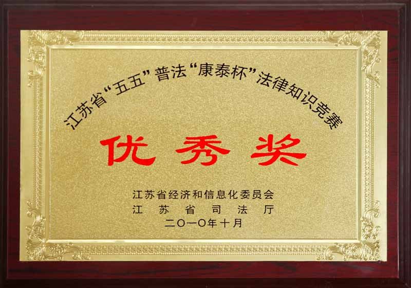 2010年江苏省五五普法康泰杯法律知识竞赛优秀奖