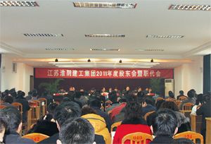 在全国人大政协两会之际,3月5日上午,集团召开了2011年度股东会暨职代会。会议由胡从亮总经理主持,许金华董事长和傅强主席分别作了行政工作报告和监事会工作报告。市住建局副局长王守祥、市总工会副主席张峰应邀到会并讲话。非职工代表的集团公司领导、部门负责人、分子公司班子成员、在建的统管工程项目经理和优秀技术人员代表列席了会议。会议还对2010年度先进单位、先进集体、先进项目部和先进个人进行了表彰。