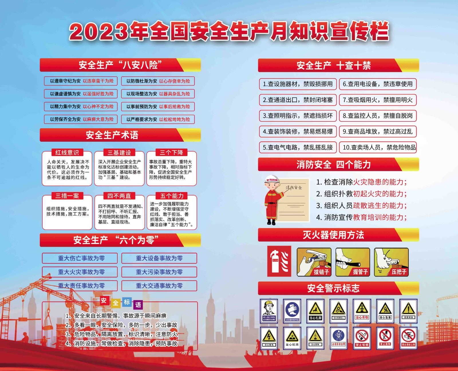 2023年6月是我国第22个安全生产月,集团紧紧围绕“人人讲安全、个个会应急”的活动主题,根据相关文件精神,开展“安全生产月”活动的统一部署和安排,安全设备部及时制定了活动方案,组织召开专题会议进行宣传部署和贯彻落实,使活动开展的有计划、有布置、有检查、有落实,从而使安全生产月活动在集团机关、各分(子)公司、项目部范围内迅速有序开展,通过本次活动的开展,取得了显著的效果:
